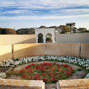 4、进清真寺后,沿着不走回头路的单向路线,左拐绕过露天广场,途经的厕所建议下到负一层看一下,因为厕所隔壁是“净衣间”,一个圆形换洗池,是穆斯林礼拜前“净身”(非穆斯林游客不需要)的场所,宗教设施的独特性和美感值得一看,但管理员有时会让游客脱鞋。主厅是礼拜厅被围栏围着,只有穆斯林礼拜时才能进入,游客只能在围栏外拍照。