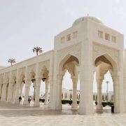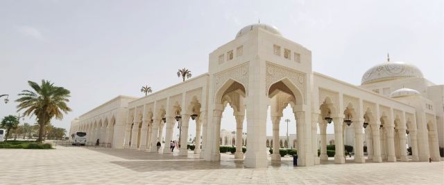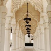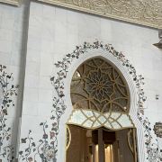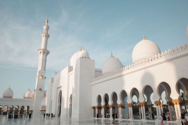大清真寺的外观堪称一绝,洁白如雪的大理石建筑在阳光的照耀下熠熠生辉,82个大小不一的穹顶错落有致地分布着,宛如一片白色的海洋泛起层层涟漪。4座高耸入云的宣礼塔直插云霄,仿佛是通往天堂的使者,召唤着信徒们的心灵。走进清真寺内部,更是被其奢华与精致所震撼。墙壁上镶嵌着精美的花纹,由各种珍贵的宝石和贝壳组成,在灯光的映衬下闪烁着五彩斑斓的光芒。廊柱上的镀金装饰,在阳光的穿透下,反射出耀眼的金光,给整个空间增添了一份神圣而庄严的气息 。