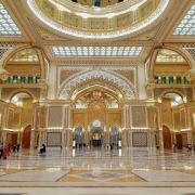 而作为内饰 富得流油的阿布扎比自然也不吝啬 大门是德国诺布莱斯的 玻璃是防弹的 水晶吊灯是德国的 用的是奥地利施华洛世奇的水晶 地摊是波斯的上品 据说也是全球最大……林林总总 举不胜举