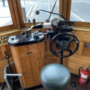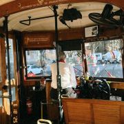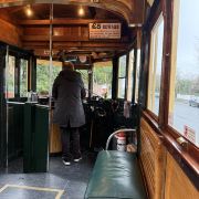 坐上木质座椅、听著叮叮作响的电铃声,有一种走进过去时代的感觉。车厢保存得很好,仿佛时光倒流回20世纪初。