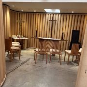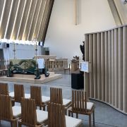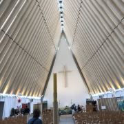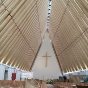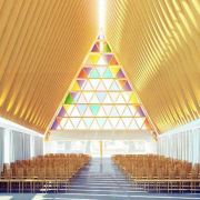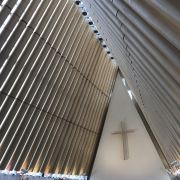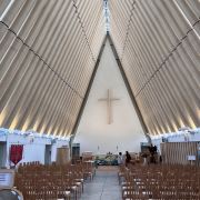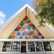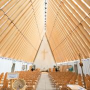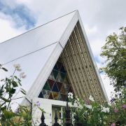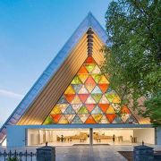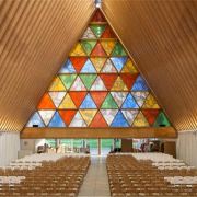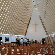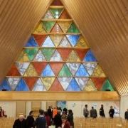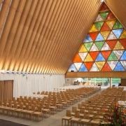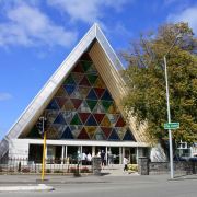 由日本设计师坂茂在大教堂废墟一个街区以外重新设计建造的临时教堂。重建教堂的这片废墟曾经居住了很多亚洲学生,数量较多的是日本学生,他们中的多数死于当年的地震,这座临时教堂也是为了慰藉逝去的生命。这座建筑采用了混凝土基座,整体造型呈A形,A形的两边由硬纸卷建成,并采用集装箱支撑墙面,教堂两端镶嵌彩色玻璃,聚碳酸酯屋顶有助于保护这些结构。