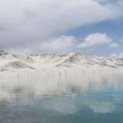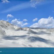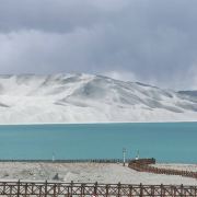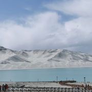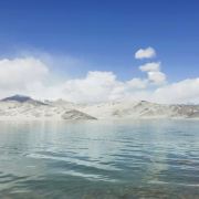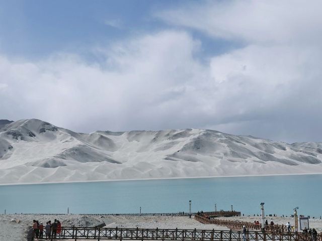 白沙湖—白沙山景区,位于阿克陶县布伦口乡,距离阿克陶县县城150公里。白沙山是新疆奇特景观之一,又称为“响沙山”,每当有劲风吹来,白沙山就会发出响声。白沙山山前是布伦库勒湖,山后是恰克拉克湖,水草肥美、水鸟聚集,青色的山体被白沙所覆盖,半遮半掩,起伏延绵,与山顶的雪山和山下的湖泊河流,形成了气势恢宏的一大奇观,美不胜收,令人惊为仙境。布伦库勒湖是新疆湿地自然文化景观,柯尔克孜语意为“山脚落的湖”。