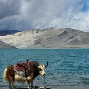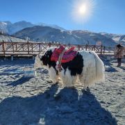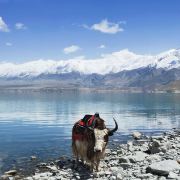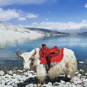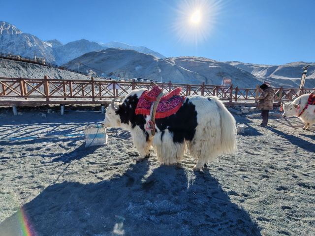 高耸入云的雪山、蓝色的湖泊和湖边可爱的牦牛这些都深深吸引了来自内陆平原的我们,在湖边骑牦牛拍照,也是非常难得的体验