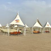 沙漠之门景区,现有汽车越野挑战赛区、自驾车营地、沙漠戏水、沙漠美食节、沙疗康养、休闲娱乐等七大区域数十项主题娱乐体验项目,是国家沙漠主题公园和新疆十大精品体育赛事所在地。