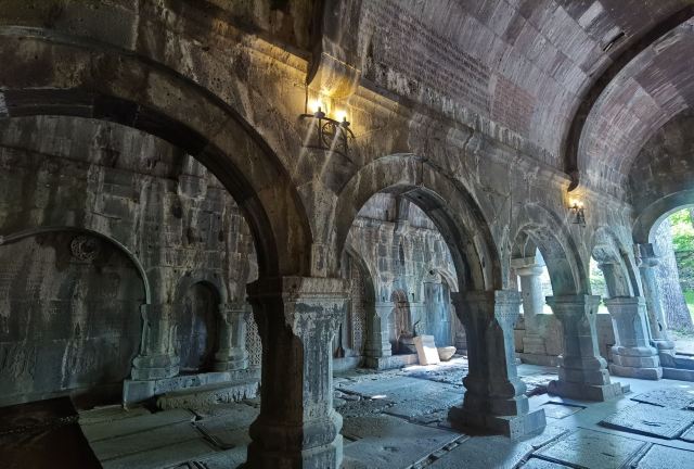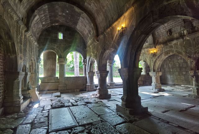 萨那欣修道院,隐藏在一片松林中,是亚美尼亚现存的大型宗教建筑,始建年代是10世纪后半叶。