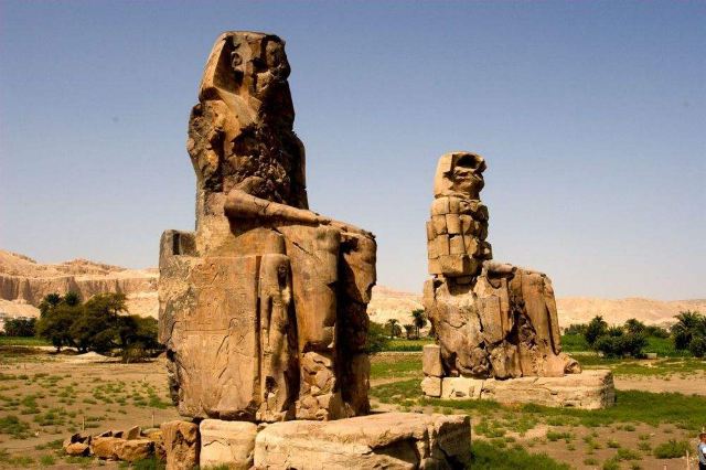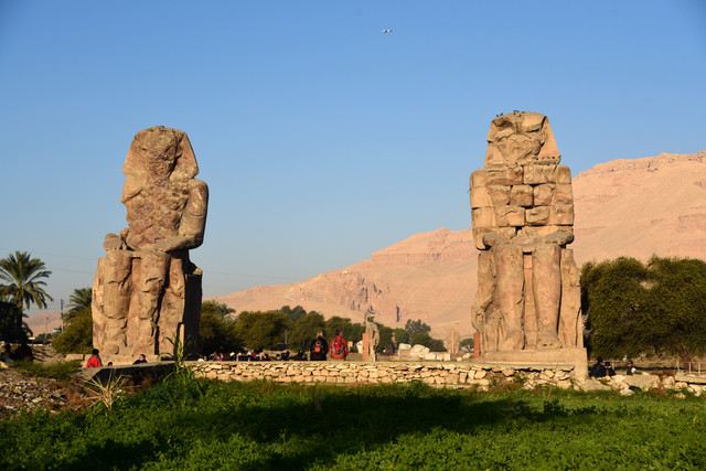 曼侬巨像是矗立在尼罗河西岸和帝王谷之间原野上的两座岩石坐像。这两尊曼侬巨像,原立于一塔门前,高约18米,基座侧面浮雕上挥着尼罗河神哈比莲花及纸莎草的图案,象征着上下埃及的统一。