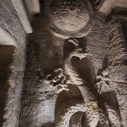 孔索加法地下墓穴内阴暗的螺旋梯是当年运送尸体的通路,在这里人们用绳子将死者的尸体顺着圆轴往下放。中央的天井可供照明和通风,往下走到1层,经过走廊就到达圆形大厅,左手边的餐室是供丧家用餐之处,前面的阶梯向下通往2层的主墓室。墓室内壁的浮雕举世罕见:守门的圣蛇戴着代表上下埃及的红白王冠,手持希腊酒神狄俄尼索斯的松果权杖和宙斯使者赫尔莫斯的双蛇魔杖,头上还顶着希腊女妖美杜莎的圆盾,而立于墓室内的埃及墓地守护神阿努比斯更是采用罗马军团的装扮。这些奇特的浮雕使得这座墓室声名大噪。