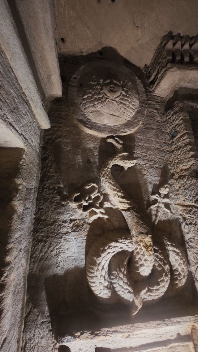 从接待室穿过两条小道,进入一个U型走道,走道转角处有一个洞穴,这才是墓室的主人的埋棺处。