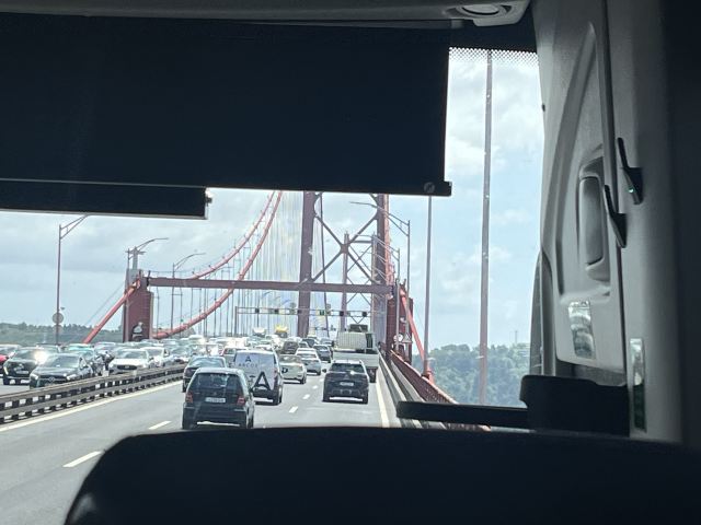 5分 超棒参团旅行,第六天上午,从塞图巴尔诺富特酒店出发,前往里斯本市区,经过4.25大桥,单观里斯本大耶稣像。