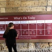 在城堡里面,定时有表演,有哈利∙波特的表演,也有乐队的演奏,在进大门以后,就在左手边有告示牌,上面贴着表演的时间表,大家最好进门以后先看看,自己心里有个数,然后再按照时间赶去表演场地,我们当时就是没有看时间表而错过了精彩的表演。而乐队的演奏就在草地上,轻快的英格兰音乐和所有的演奏家都会穿上传统的英格兰礼服,场面值得一看。
