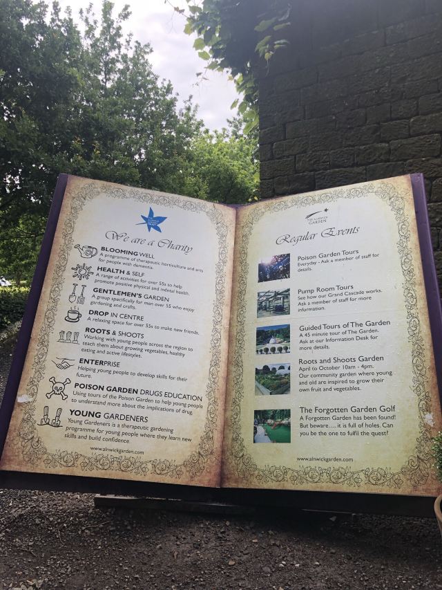 里面有一个爱伟克花园,进去是要门票的,和进城堡的门票是分开收费的,而且买票有的时候需要排长队,所以有些人会因此放弃进入花园参观了。就算是买到票进去了,也只能够参观一个小时。进了城堡的大门,首先可以见到广阔无垠的草地,很多小孩子来到这里,都会到处奔跑、玩耍,玩得很开心。城堡里的建筑很有特色,也很经典,在一扇门上面,有一具人形骷髅,四肢被铁链锁住,然后钉在门板上。旁边还有一个动物的头部骷髅,怒目圆睁,张着大嘴,露出长长的獠牙,好像要把人给吞了似的。看着它,也是有点害怕的。