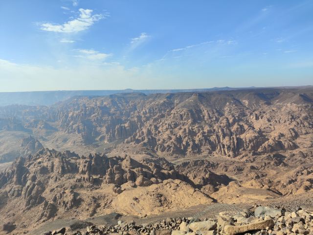 Harrat Viewpoint坐落在一片广袤的火山岩石高原上,在这里游客可以俯瞰到令人惊叹的火山景观,这些景观由数百万年来的火山活动所形成。火山喷发留下的熔岩坑、熔岩通道和火山锥都可以在这里观赏到。远眺时,火山链延伸至地平线,尽收眼底,让人叹为观止。