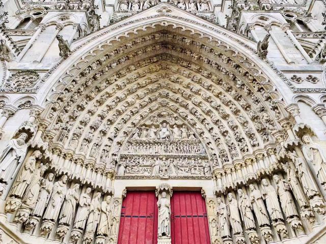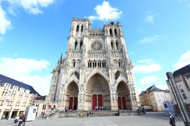 亚眠大教堂坐落于法国索姆省亚眠市索姆河畔,建于1220年,是哥特式建筑鼎盛期建造的大教堂。内部由三座殿堂、一个十字厅(长133.5米、宽65.25米、高43米)和一座后殿组成。布局严谨。教堂的墙壁上雕饰有基督教先知、信徒和法国历代国王的画像。并有知名的宗教题材的雕像,表现各种宗教修行、圣人传记以及创造大地的历史,被称为“石头上的百科全书”。