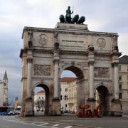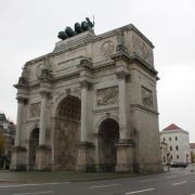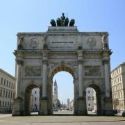 慕尼黑凯旋门高21米,宽24米,厚12米。风格类似于伦敦的大理石拱门以及柏林的勃兰登堡门。此门由巴伐利亚国王路德维希一世建造,完成于1852年。顶部有双轮战车和狮子。使用狮子是因为狮子是统治巴伐利亚的维特尔斯巴赫王朝的标志。