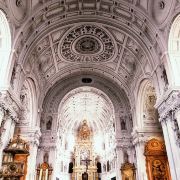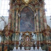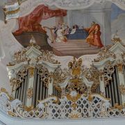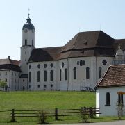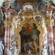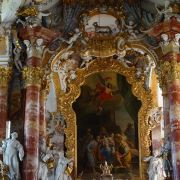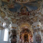 位于施泰因加登(Steingaden)威斯区(Wies)的维斯朝圣教堂“受鞭打的救世主”是世界出名的洛可可式教堂之一。这座教堂的中心是受难的基督耶稣——受鞭打的救世主形象。1738 年6月14日,名叫玛利亚·罗瑞(Maria Lory)的农妇看到刑柱上受难耶稣的眼中淌着泪水。这一奇观随即引发了人们前往 “受鞭打的救世主”教堂朝圣的风潮。为此,1745至1754年多米尼库斯·齐默尔曼(Dominikus Zimmermann)建造完成了这座教堂。维斯朝圣教堂装饰几乎完全采用了洛可可艺术风格。每年大约有一百万游客从世界各地前来参观,其中也包括许多朝圣者。