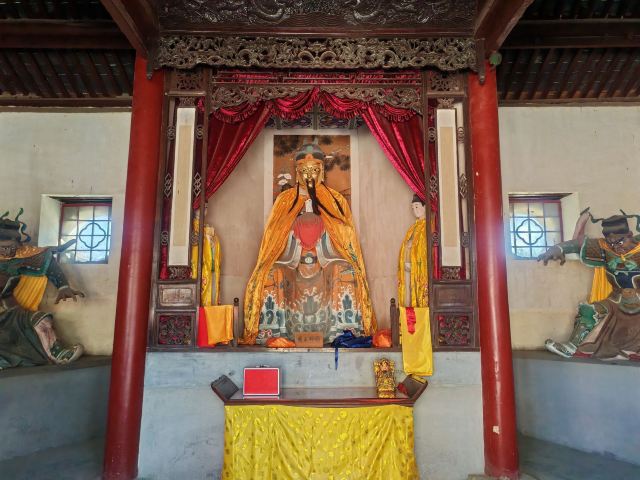 后殿又名寝殿,建于明永乐元年(公元1404年),殿内塑药王邳彤及其两位夫人塑像。