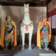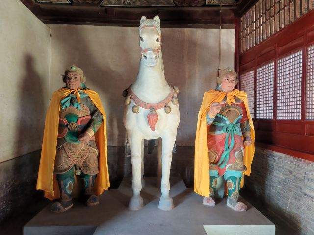 马殿建于清嘉庆23年(公元1818年),是药王庙的正面山门殿。硬山顶叠梁结构,后出廊。门楣悬“药王庙”匾额,为清乾隆年间东阁大学士刘墉所书。因为药王武将出身,殿内塑红白两匹战马,四名马童分立。