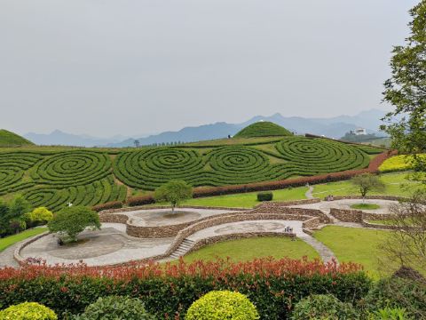 园区面积很大,今天逛了3个小时还没有走到一半。里面有玫瑰园,竹园,梅园,荷园,菊园,薰衣草,等多个园区,还有梯田状的茶园。规划的非常好。可惜因为时间的问题还没有逛完。在西侧还有一个科技感十足的餐厅和十几个地球仓民宿区没去看。(留着下次再来住把)