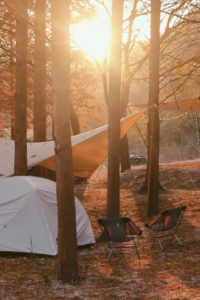 对于露营爱好者来说,小杭杭景区无疑是天堂。2号营地的设施十分完善,有现成的天幕及帐篷可供租用,帐篷内空调、床铺等一应俱全。就算是自带帐篷,也有宽敞的空间和良好的配套设施。
