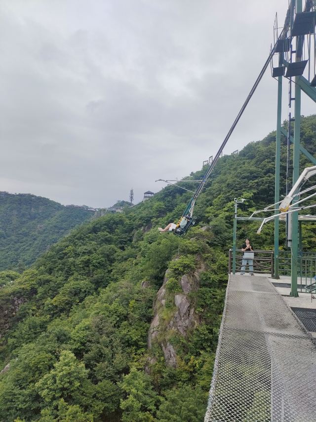 悬崖蹦极:火到出圈的“窝囊版蹦极”,是一种新型的“温柔版”蹦极项目,于2023年升级改造推出,旨在让更多人能够跨越心理障碍,体验蹦极的魅力。蹦极台高度约为二三十米,下降速度较慢,从蹦出到落地约需10秒至15秒,通过调整绳索的弹性与下降速度,让绳索平稳降落,降低了传统蹦极的恐惧感和刺激性。虽然外观上不如传统蹦极惊险,但跳下去的瞬间仍能感受到失重和心跳加速,让游客在相对安全的情况下体验蹦极的乐趣。