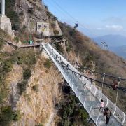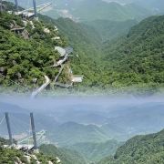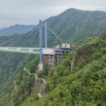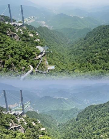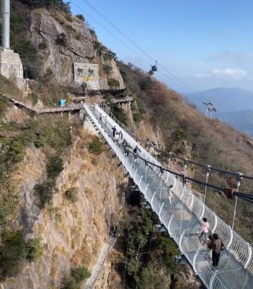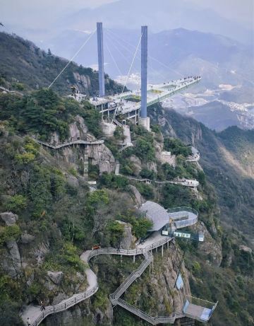 天空之阶:屹立在海拔1168米的悬崖之上,向外探出80.9米,呈独特的 A 字型延伸。全透明的玻璃桥身澄澈如镜,仿佛将天空与山巅无缝连接,构建出一片如梦似幻的天空之境。当您踏上天空之阶,瞬间仿若置身浩瀚云端,脚下是深不见底的万丈深渊,四周则是广袤无垠的苍穹,每迈出一步,心跳都随之加速,这种远离平地、突破平凡的刺激感,定会让您刻骨铭心。