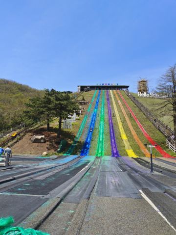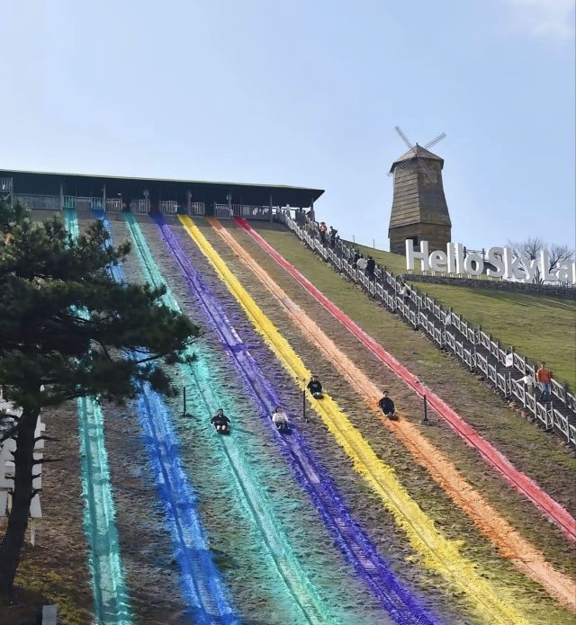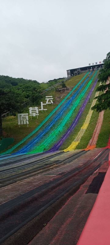 彩虹滑草:色彩斑斓的滑道由多种明亮鲜艳的色彩拼接而成,远远望去,恰似一条绚丽的彩虹从天际飘落,完美镶嵌在翠绿的草原之上。当您坐上滑草器具,从滑道顶端顺势而下,下滑过程中速度逐渐加快,疾风在耳边呼啸而过,带来强烈的速度感与刺激感。此刻,您仿佛化身为自由翱翔的飞鸟,在彩虹般的轨道上肆意驰骋,尽情感受心跳加速的畅快淋漓。这种既刺激又安全的体验,深受各个年龄段游客的喜爱。