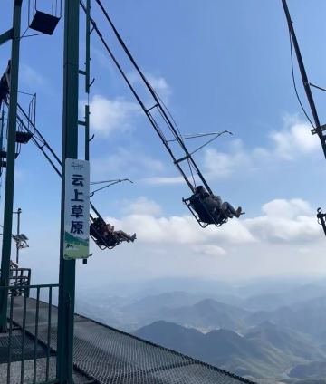 云端秋千:临崖而设的秋千群,为您提供4米、6米、8米、10米多种荡索长度选择。坐上秋千,在狂野的山间用力一荡,刹那间,“命悬一线” 的惊险感扑面而来,身体随着秋千的大幅度摆动在高空来回飞舞,耳边呼啸而过的风声仿佛是勇气的赞歌。在这尽情释放的过程中,您能深切感受到生命的蓬勃律动,内心的压力也随之烟消云散。