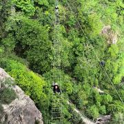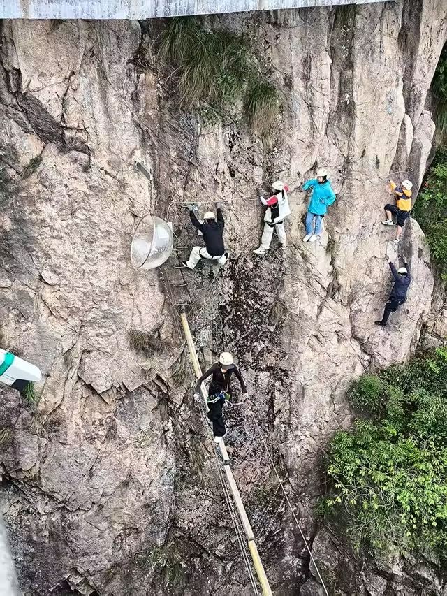 飞拉达・悬崖穿越:作为铁道式攀岩项目,飞拉达・悬崖穿越让您有机会在峭壁之间辗转腾挪。穿戴好专业的攀岩装备,沿着峭壁上精心铺设的铁索和脚蹬,一步一个脚印地向上攀爬。攀爬过程中,不仅能锤炼自身的勇气和力量,还能近距离领略峭壁的险峻雄奇,每一次发力、每一次移动,都伴随着肾上腺素的急剧飙升,让您尽享挑战极限的快感。