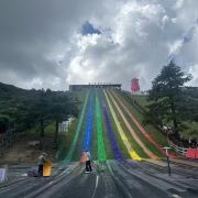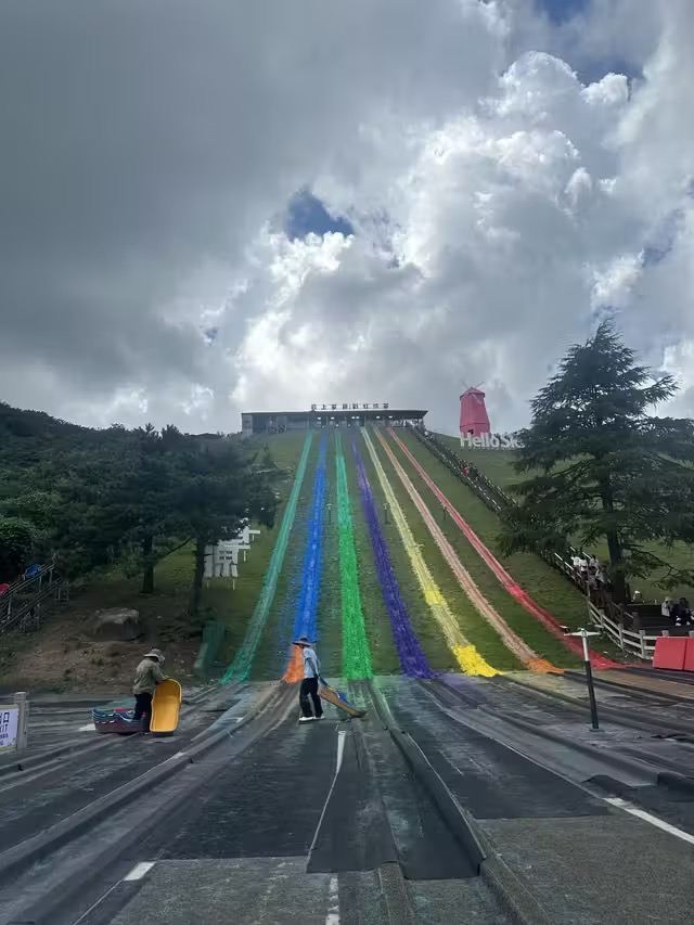 彩虹滑草:色彩斑斓的滑道由多种明亮鲜艳的色彩拼接而成,远远望去,恰似一条绚丽的彩虹从天际飘落,完美镶嵌在翠绿的草原之上。当您坐上滑草器具,从滑道顶端顺势而下,下滑过程中速度逐渐加快,疾风在耳边呼啸而过,带来强烈的速度感与刺激感。此刻,您仿佛化身为自由翱翔的飞鸟,在彩虹般的轨道上肆意驰骋,尽情感受心跳加速的畅快淋漓。这种既刺激又安全的体验,深受各个年龄段游客的喜爱。