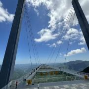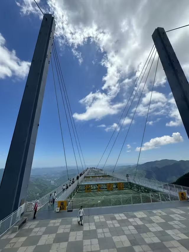天空之阶:屹立在海拔1168米的悬崖之上,向外探出80.9米,呈独特的 A 字型延伸。全透明的玻璃桥身澄澈如镜,仿佛将天空与山巅无缝连接,构建出一片如梦似幻的天空之境。当您踏上天空之阶,瞬间仿若置身浩瀚云端,脚下是深不见底的万丈深渊,四周则是广袤无垠的苍穹,每迈出一步,心跳都随之加速,这种远离平地、突破平凡的刺激感,定会让您刻骨铭心。