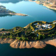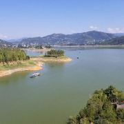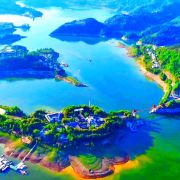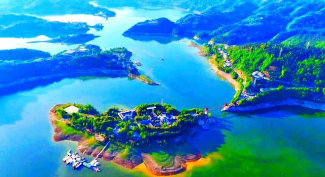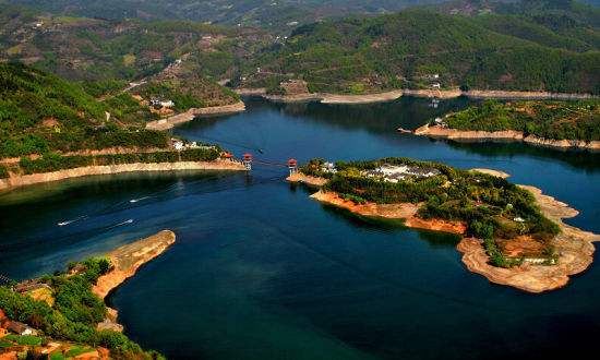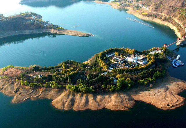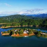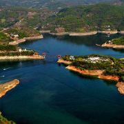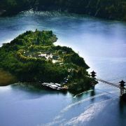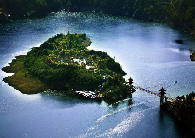 瀛湖翠屏岛是瀛湖风景区景点之一,建筑以苏州园林式风格为主。它由三部分组成:北部为大型建筑玉清吊桥,全长161米,四座古亭腾空高耸,与湖岸相连;中部是按4星级标准打造的瀛湖酒店,可承办大型会议,提供就餐、住宿服务;南部为植物园,园内栽植秦巴名优花木、竹林和鲜果,有誉为植物活化石的“鸽子树”和成片樱花林。因四季如春,绿意盎然,从空中俯瞰犹如孔雀开屏,所以人们称之为“翠屏岛”。