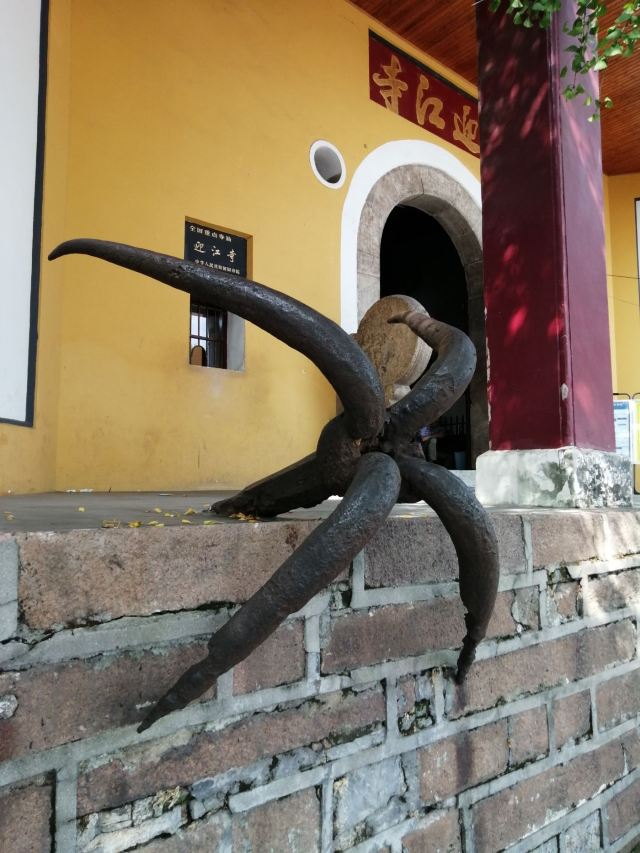 寺由殿、堂、阁、楼、房、塔、园等古建筑群组合而成,占地2.2万平方米。临江的山门上嵌有清光绪帝手书的“迎江寺”3个楷书金字,雄浑稳健,光彩熠熠。汉白玉石的门券上嵌有四爪神龙浮雕。山门左右分置大铁锚,重约3吨,为众寺院所不有。据民间传说,安庆地形如船,塔为桅杆,若不以锚镇固,安庆城将随江东去,故而设之。