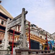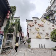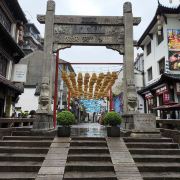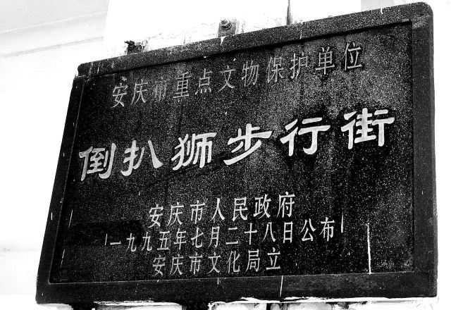 安庆古城有条全国闻名的古街倒扒狮步行街,因当街有明代隆庆年间所建之“倒扒狮子”石牌坊而得名,这个石狮子不坐不爬,而是双腿举起倒拿表演,俗称倒扒狮,按当地风水意为聚财,财富不外流,又表示经商和气谦恭,迎四方宾客。