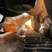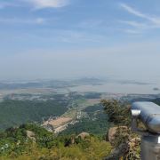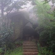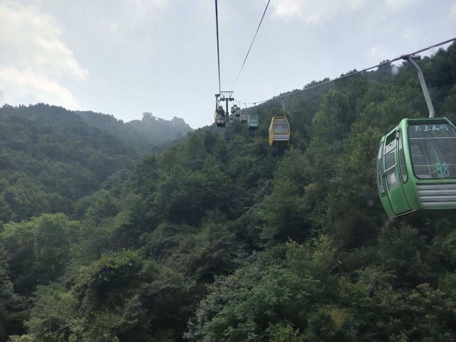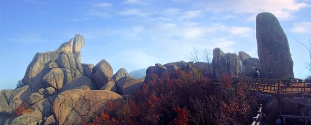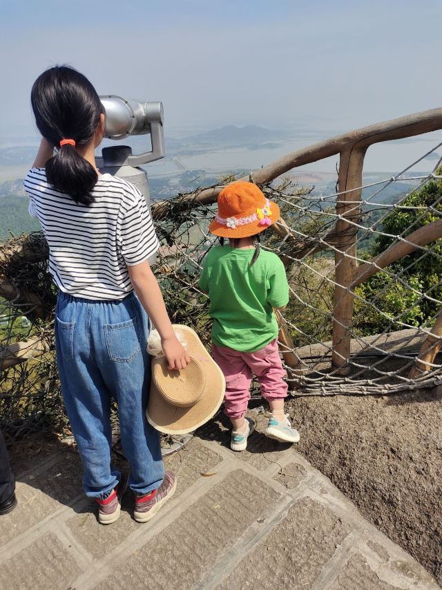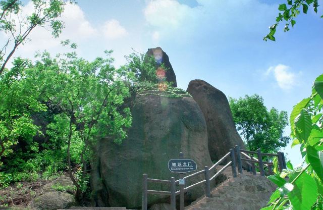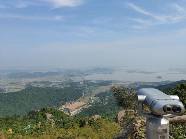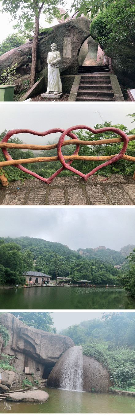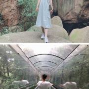 还是走左边的路登顶,过碧莲池后,就到达了好玩的地方——长1公里多的龙宫(千曲洞),天然巨石崩塌形成了长长的洞穴,可以钻洞玩。出洞后登顶龙头峰,在山路上看到的巨大石头此时都在自己的脚下,远处是辽阔的湖泊,风光无限。接着选择环线另一边的路下到龙窝,不走回头路。到达龙窝后,也是选先前没走过的路,即宜秀谷方向下山;当然,也可以坐索道下山。