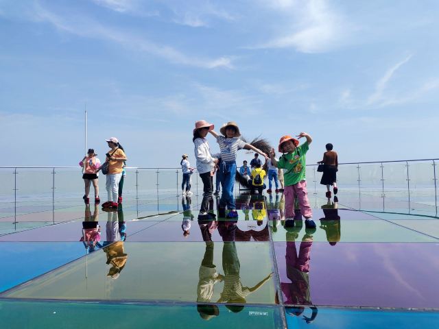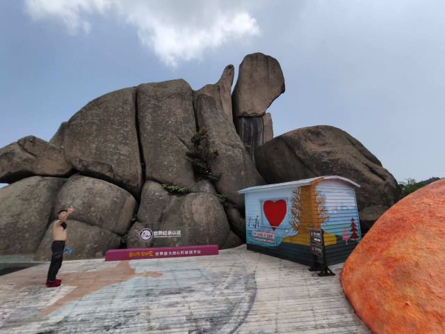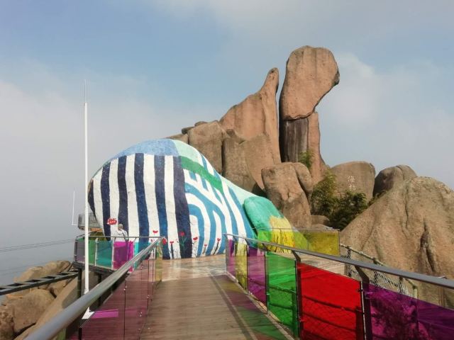 到了龙窝后,主景区的游览才开始,顺彩色步道沿阶而上,直接通到520玻璃观景台,迎面是立体型的“love”雕塑,右手边为玻璃观景台入口,520米长,520平方.520度高空平台,集合玻璃长廊,玻璃栈道和玻璃观景台为一体得心形平台。如果你不去最高峰,就走小环线,约1小时;去最高峰,就走大环线,约3小时。建议走大环线,因为超好玩的、超好看的,都在山顶和去山顶的路上。