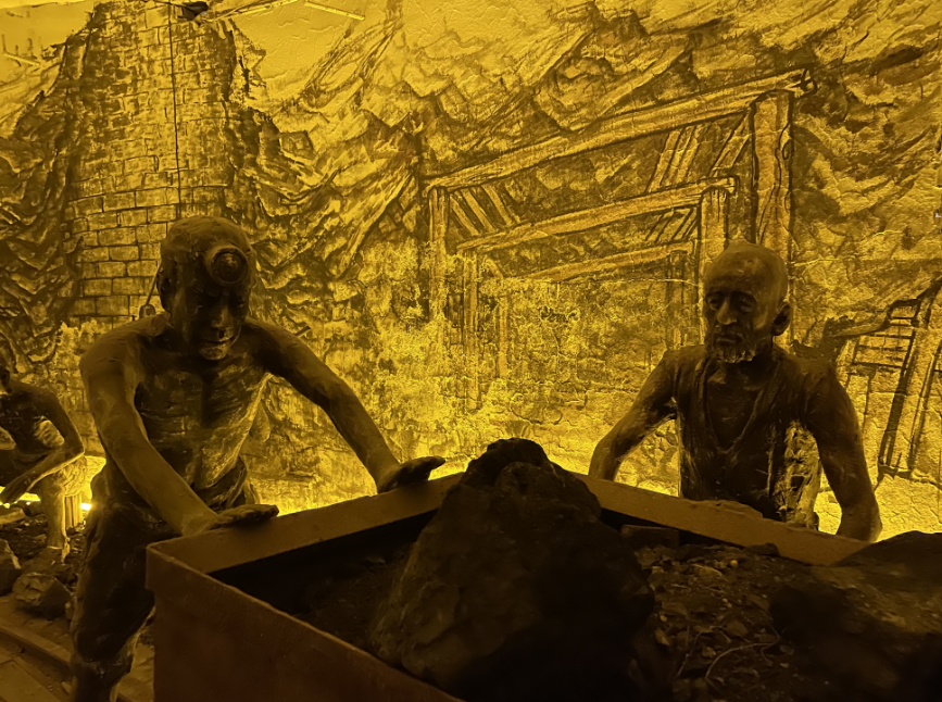 坊子炭矿遗址及模拟井下体验区,展示德建蒸汽机房、德建烟筒、德建绞车房、德建官员办公室、德建坊子竖坑、日建维修车间等9处德日建筑。利用遗存的输煤长廊打造了两条100多米的模拟井下巷道,沿巷道铺设了两条矿车轨道,沿轨道架设了防爆灯。两条巷道分别布展了井下生产所用的各种工具、设备、设施、支护方式、德日时期的采煤场景、现代采煤生产场景、掘进生产场景等,并且还能现场体验煤电钻、风钻、井下手摇报警器的操作过程,真正让游客体验到井下生产场景的真实画面。参观全程由讲解员进行讲解,通过解读一处处历史遗迹,了解文物背后的故事,感受坊子的历史和人文底蕴。