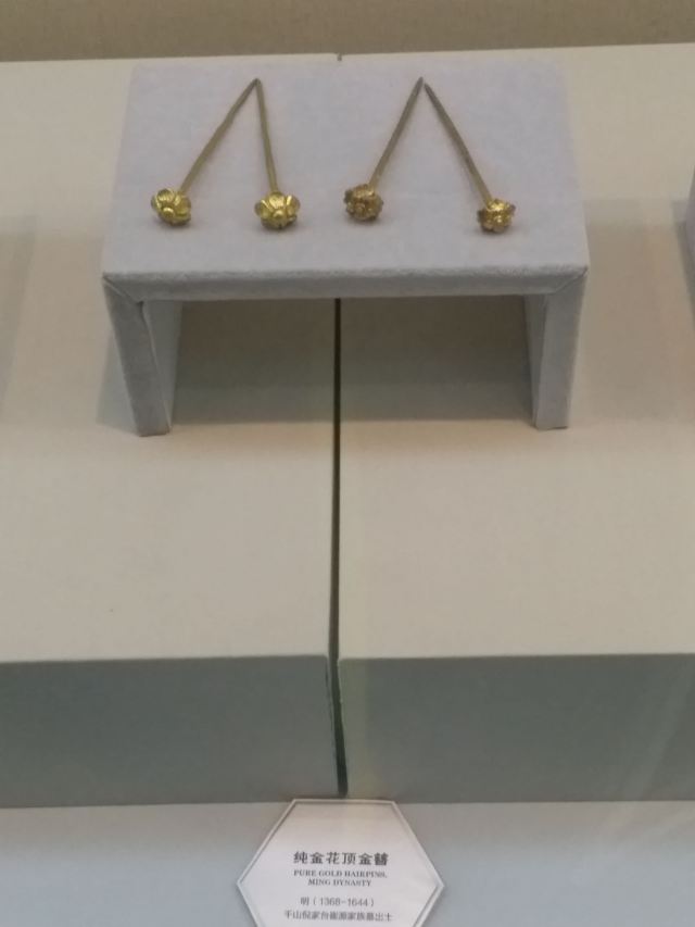 p3,p4合起来说都是崔源族墓里出土的,我这里简单介绍一下崔源家族。墓始建于明景泰元年(1450年),崔源是这一墓园中辈分最高者。崔氏家族多人曾担任明朝要职,崔源之子崔胜、长孙崔鉴、次子崔贤、崔贤三子崔世武都曾官至辽东都司都指挥使,是明朝在辽东地区最高的军事官员。所以墓里出土的器物可想而知。我是做文玩嘛所以对当时配饰感兴趣,比如金耳钉的样式。还镶嵌了松石。