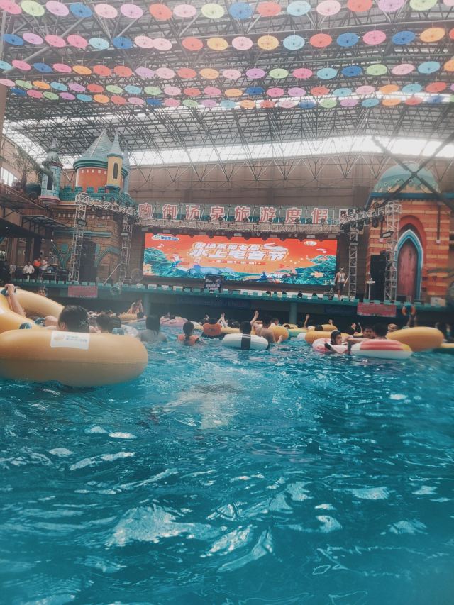 御汤泉欢乐水世界主题屋面全由玻璃构成,园内引进上百种东南亚珍贵植物,设有好望角造浪池以及加勒比水域、云龙入海、矿业征途、高峰坠落、魔幻深渊、穿越天海、天马行空、彩虹炫速、一步登空、激流勇进、亚马逊漂流河、空谷幽廊、飞来天池、天空冲撞、七维互动灯等20余项新鲜刺激的游乐项目。