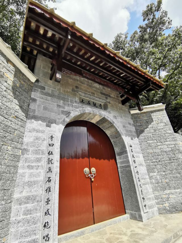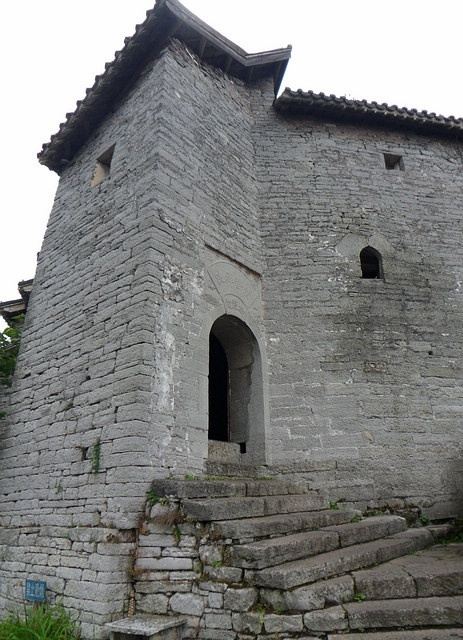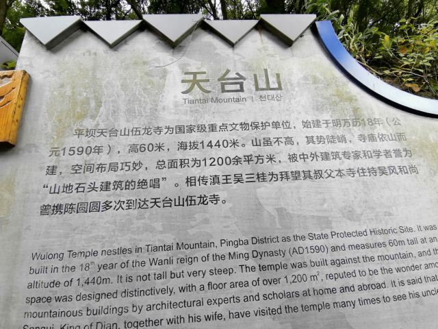 天台山伍龙寺是屯堡古寺庙建筑的典范。是当年明朝时期军队的指挥场所。但在外观上俨然是一座石头建筑的城堡,与上山的四道关隘互相呼应。是军事功能和宗教功能合一的建筑。