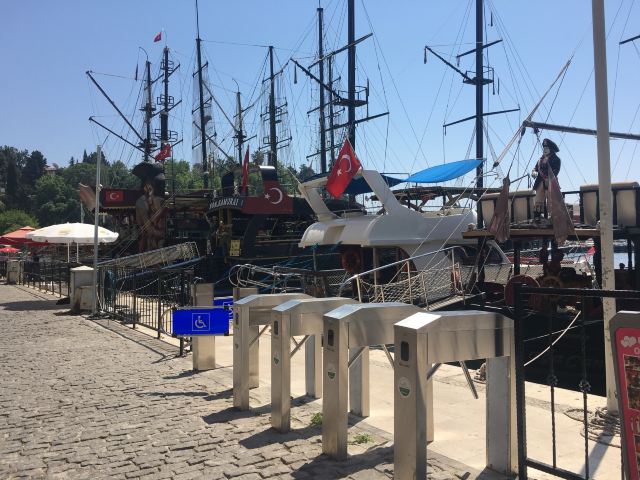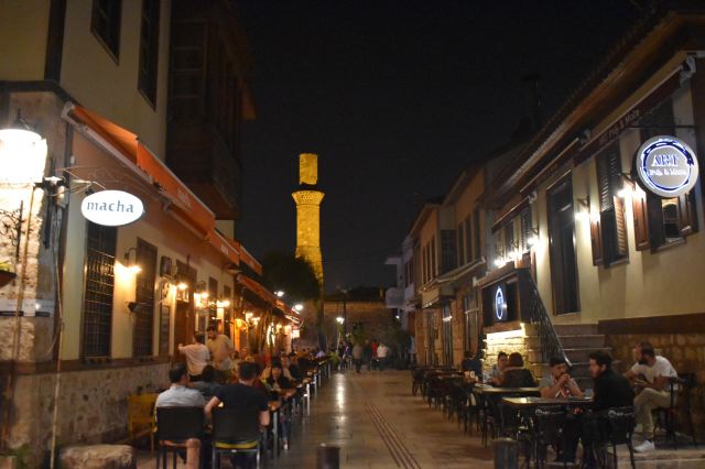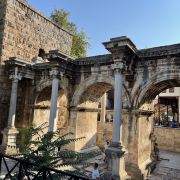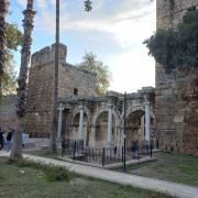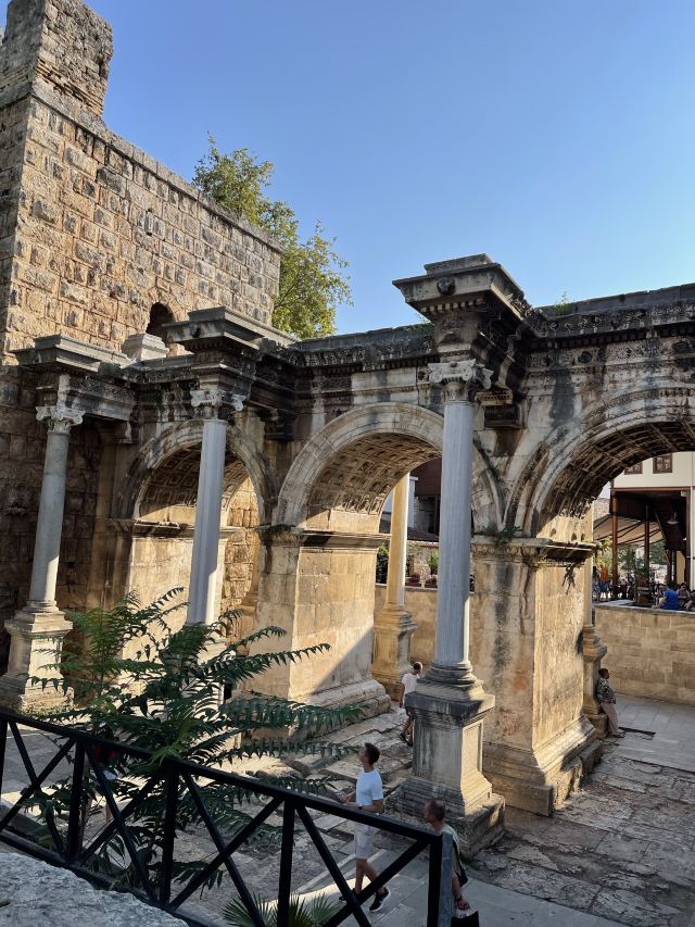 街区被共和国大街、阿塔图尔克大街和卡拉阿里奥卢公园环绕,北部宁静小巷是游览精华区。其标志性起点是哈德良门,建于公元130年前,三道大理石拱门雕刻精美,周边残留的古城墙还能看到古罗马车辙印。罗马海港曾是东地中海重要交通要道,如今停靠着游艇与渔船,可免费乘坐电梯登上观景台俯瞰全景。