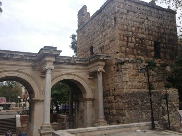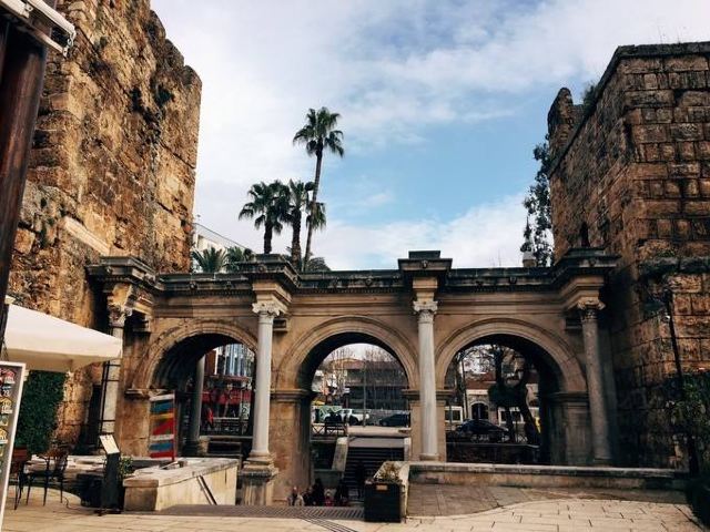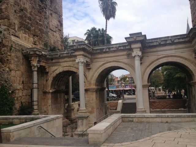 5分 超棒从城门外出到新城区,往左转就是找换店及银行,电车及Metro站也在此,这是130年前罗马帝国的哈德良大帝下令修建的,为的是纪念对这个城市的统治,数年过去后这个三拱门就成为了安塔利亚的地标。