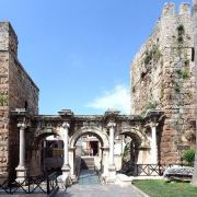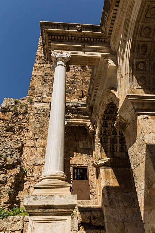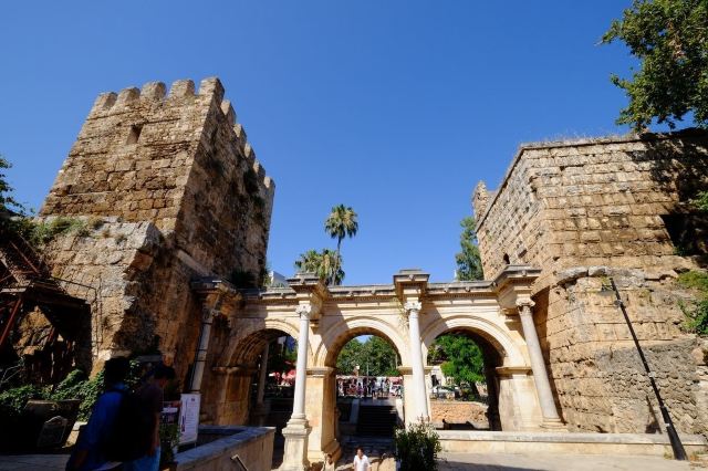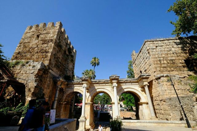 从安塔利亚的新市区进入旧市区,你一定不会错过这道古城的正门——哈德良门。这座由大理石打造的门坊,是由罗马皇帝哈德良在其统治时期建造的(117-138年),它的三道拱门和轻盈的门柱至今保留着精美的雕刻痕迹,周围仍残留着部分古城墙。
