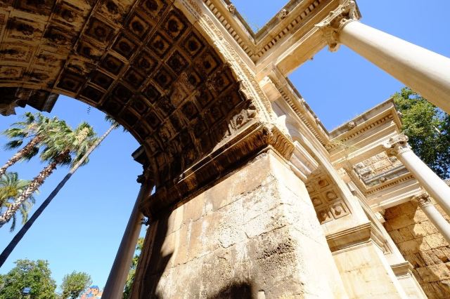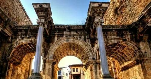 4分 满意土耳其沉浸着古罗马历史,因此许多地方都有古罗马的建筑残留。以前古罗马时代,为了庆祝军队胜利凯旋,就会建一座凯旋门,巴黎有著名的凯旋门,土耳其有哈德良门,是哈德良皇帝所建,而安塔利亚地处地中海地区,航运港口的便利,使得这里成为兵家必争之地。