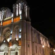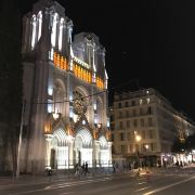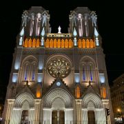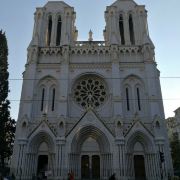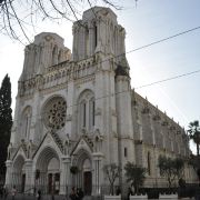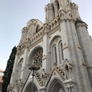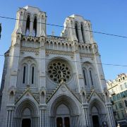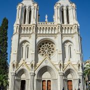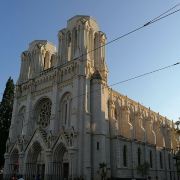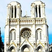尼斯圣母圣殿是尼斯较大的基督教堂,与巴黎圣母院的外观十分近似。教堂外观华丽,镶有金边的外墙和雕塑以及高65米的方形双塔是其醒目的标志。教堂的彩色玫瑰窗讲述了圣母玛利亚升天的故事。