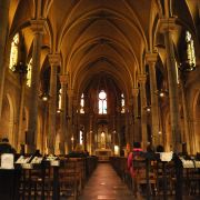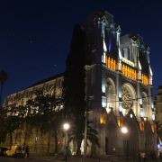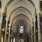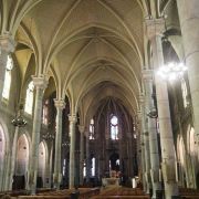 教堂由Louis Lenormand设计,兴建于1864年到1868年,受到昂热主教座堂的启发,为哥特式风格。它的建设是出于该市从意大利并入法国后一种法国化的愿望,因为哥特式建筑当时被认为代表了法国风格的特征。