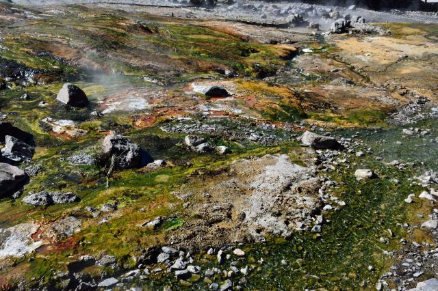 - **地质奇观**:泉眼周围硫磺结晶与蒸汽交织,形成独特景观。