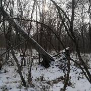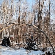 ②树大招风:一棵被大风吹倒的树干,像桥一般横在头上,展示了风的力量。