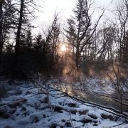 魔界风景区邻近二道白河镇,这里的水系常年不结冰,每到冬季,当气温达零下20摄氏度时,雾气便开始蒸腾。当天气晴朗时,太阳初升时的阳光从雾里透过树挂晶莹剔透,水面的枯树、岸边的雾淞与喷薄而出的红日和蒸腾飘渺的雾气交融在一起,画面很美。