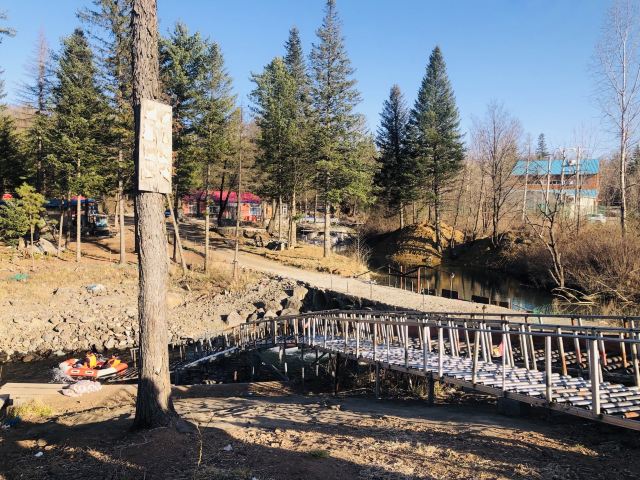 ①抗联桥:一座木制拱桥,又名“七夕桥”,桥上可看到桥下漂流的皮筏,别有一番风情。