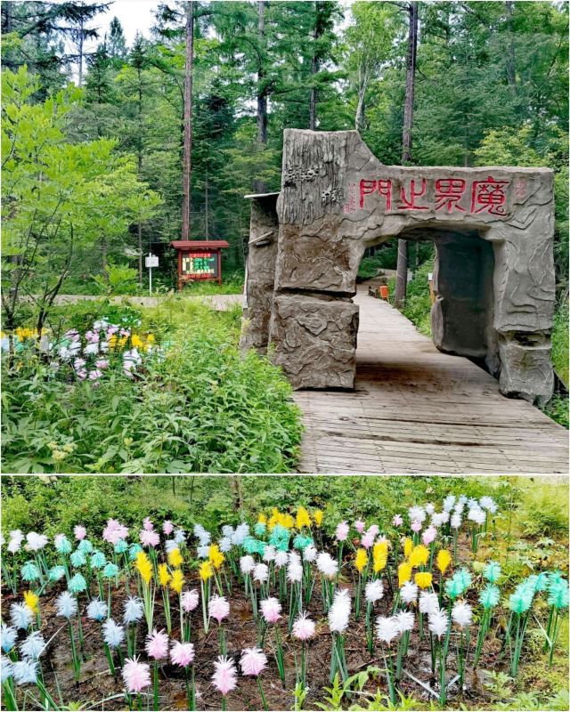 魔界风景区是位于长白山北麓的一片密林,长白山天池流泻而下的温泉水在这一带形成水系,在特定的气候环境下形成雾气,流动于水面与林间,景象宛若仙境。清晨是来这里赏景的较佳时间,尤其是冬季在雾凇衬托下很美。